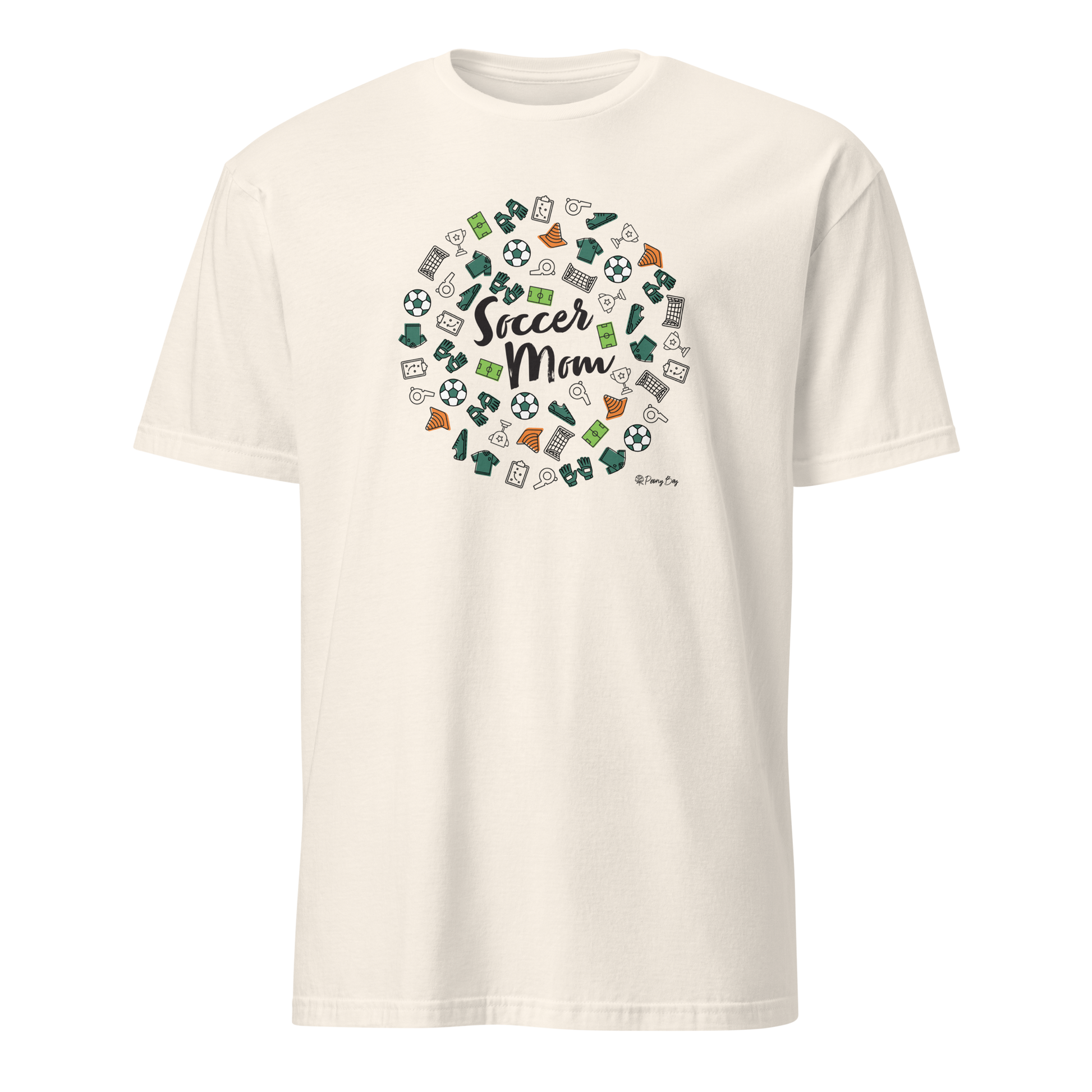 From early-morning warmups to weekend tournaments, this Soccer Mom tee is made for the mom who’s always on the field. The circle design is packed with fun soccer icons and bright pops of color — a perfect way to show your pride while keeping your outfit casual and cute.